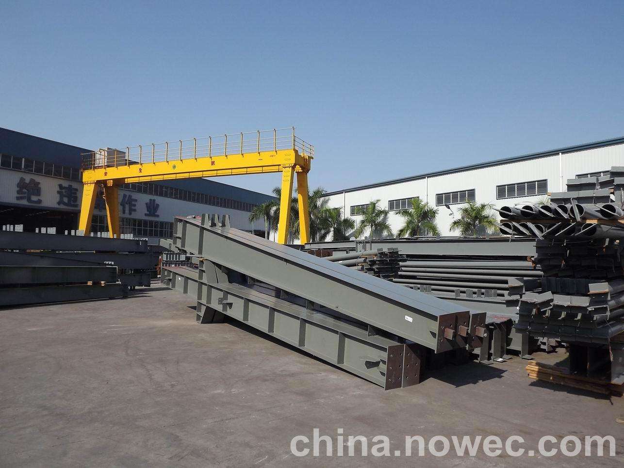 条状单元一般沿长跨方向分割,其宽度约为1~3个网格,其长度为l2或l2/2(l2为短跨跨距)。块状单元一般沿耒阳网架平面纵横向分割成矩形或正方形单元。每个单元的重量以现有起重机能胜任为准。条(块)与条(块)之间可以直接拼装,也可空一网格在高空拼装。由于条(块)状单元是在地面拼装,因而高空作业量较高空散装法大为减少,拼装支架也减少很多,又能充分利用现有起重设备,故较经济。这种安装方法适用于分割后网架的钢度和受力状况改变较小的各类中小型网架,如两向正交正放四角锥、正放抽空四角锥等网架。